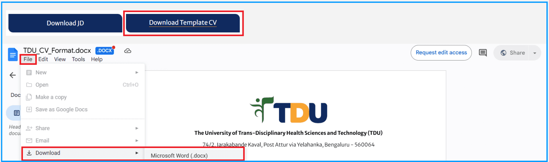 To download the CV template, please follow the steps below :