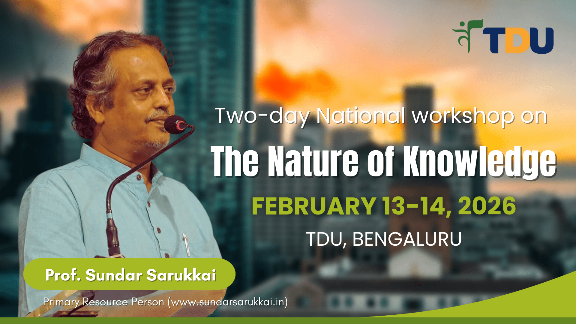 The University of Trans-Disciplinary Health Sciences and Technology (TDU), Bengaluru, is delighted to host a Two-Day National Workshop on “The Nature of Knowledge” on February 13 - 14, 2026