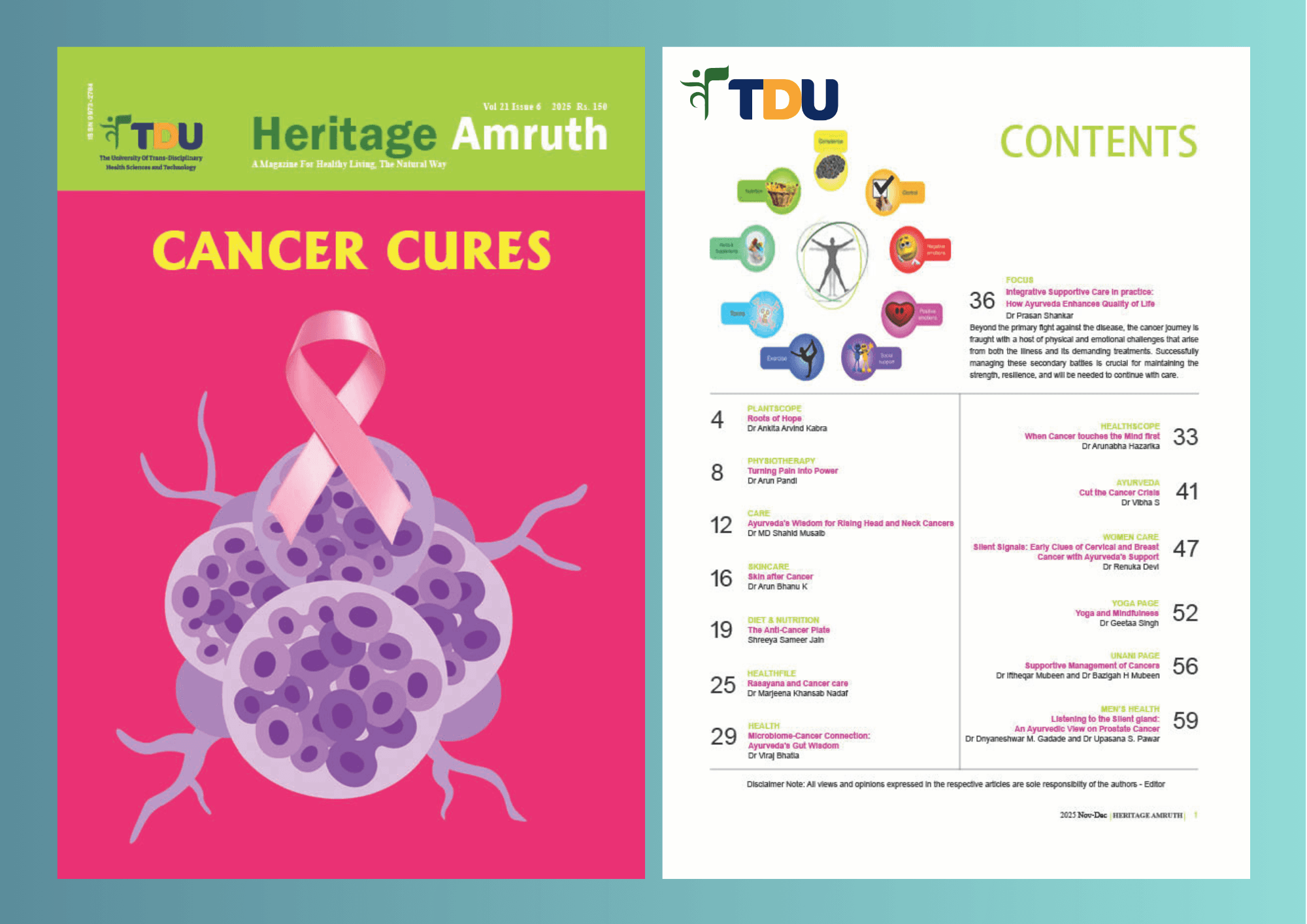 In this issue of TDU’s Heritage Amruth magazine, discover the wisdom of Ayurveda for radiant, healthy skin. With expert articles on skin-beneficial herbs to soothing rituals, acne care in teens and D-I-Y recipes for your skin care, unlock the secrets to your skin's health, care and natural beauty. Get your copy today !
